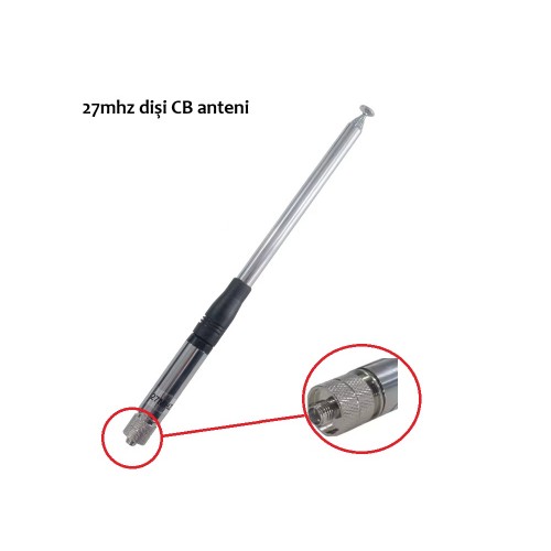 Bu anten yalnızca 27MHz CB bandında çalışır ve dual band (VHF/UHF) kullanım için uygun değildir. SMA dişi giriş yapısına sahiptir ve Quansheng gibi SMA erkek anten girişli modellerle uyumludur. 27MHz frekansını dinleme veya CB iletişim amaçlı kullanan cihazlar için uygundur.